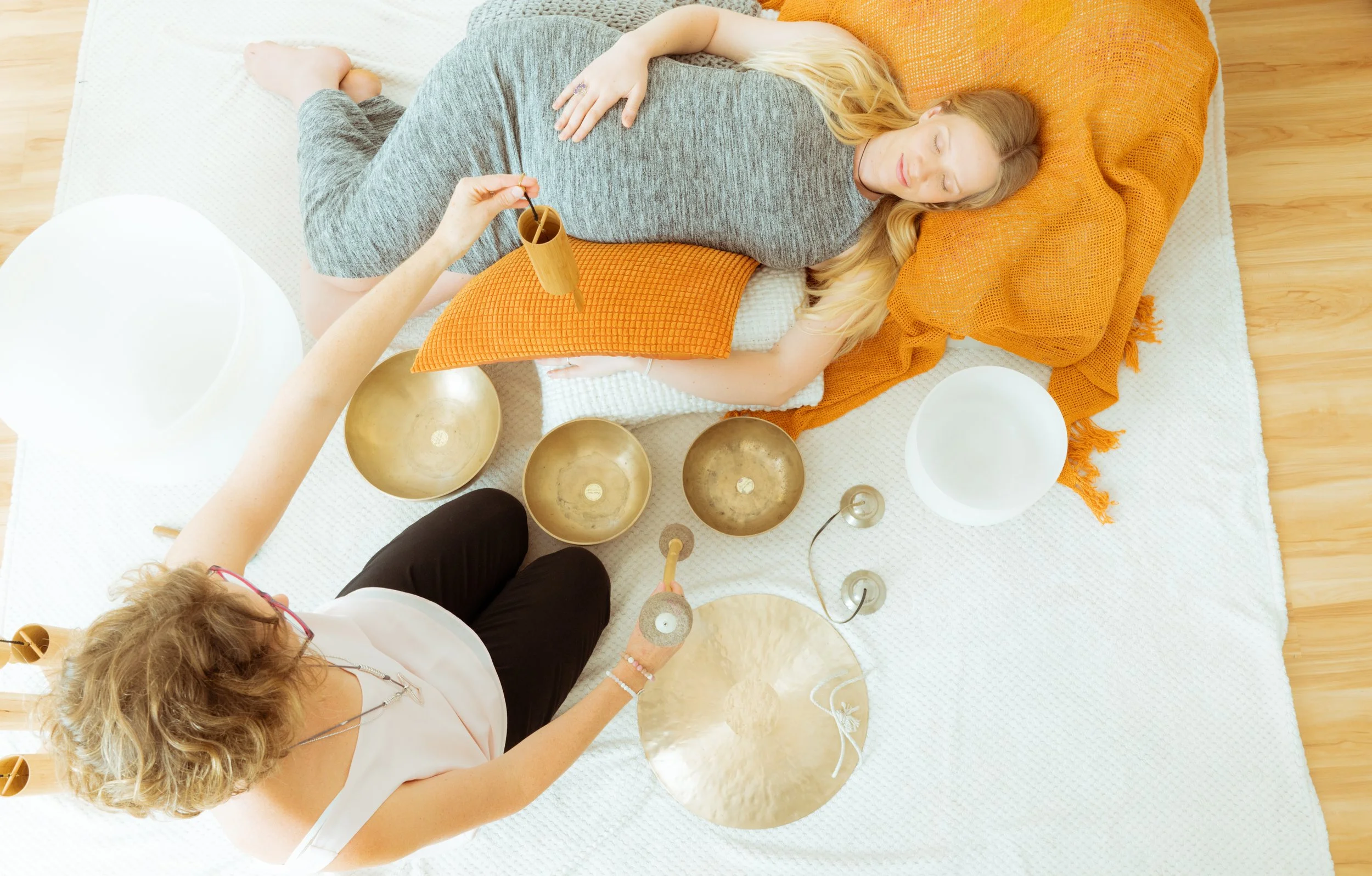 FEEL the nurturing vibrations from three high quality Tibetan Singing Bowls ON your body and HEAR the sounds gently entraining your brain into a deeply relaxed state while I give you a Sound Massage!